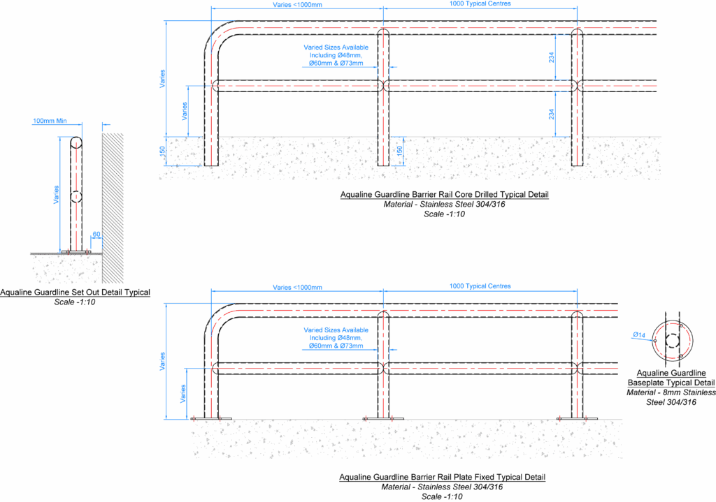 Guardline barriers are available in a variety of standard dimensions or to meet specific client requirements.